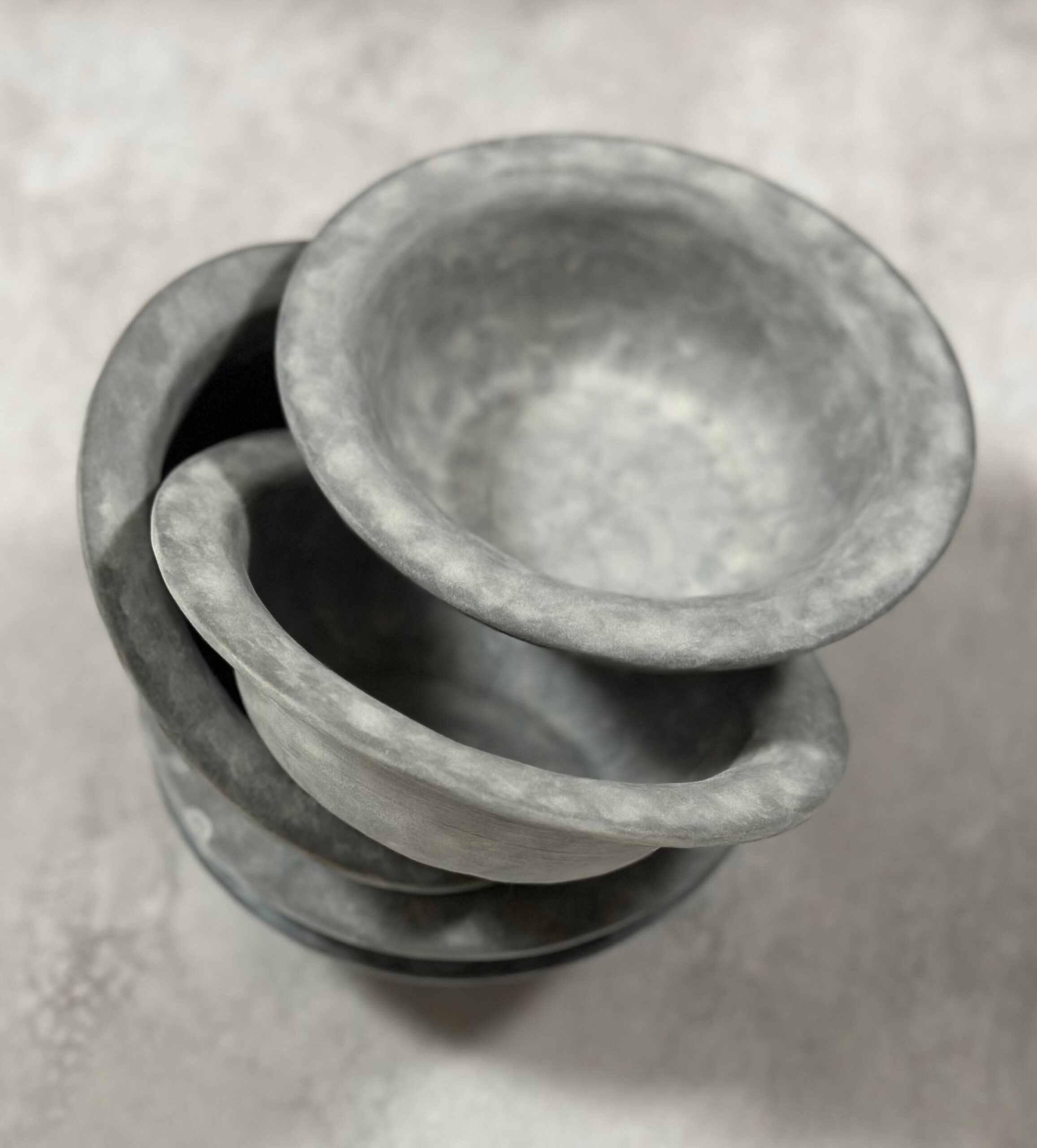 触れる手から感じていただけるよう粉引という技法を用いた作品でございます。