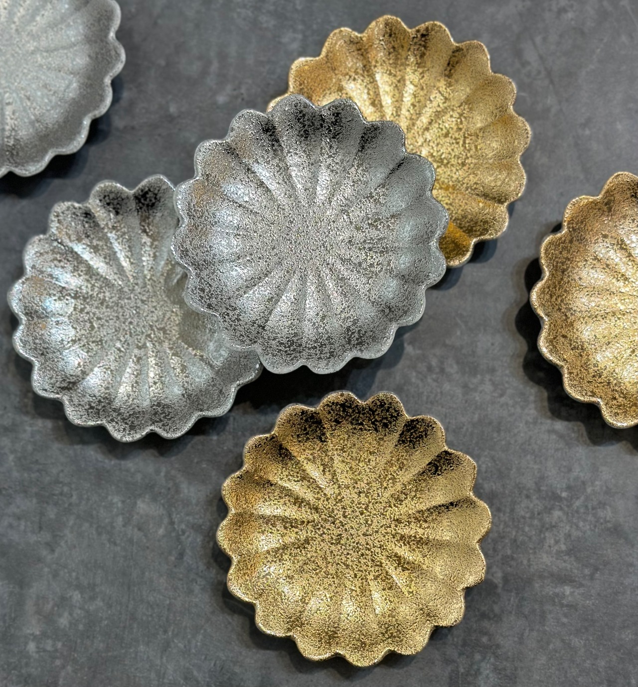 こちらは、江戸時代に作られた特徴のある13種類のお手塩皿を選定し、実物を3Dスキャンし形状を復刻した作品で、歪みなどもそのまま復刻されております。