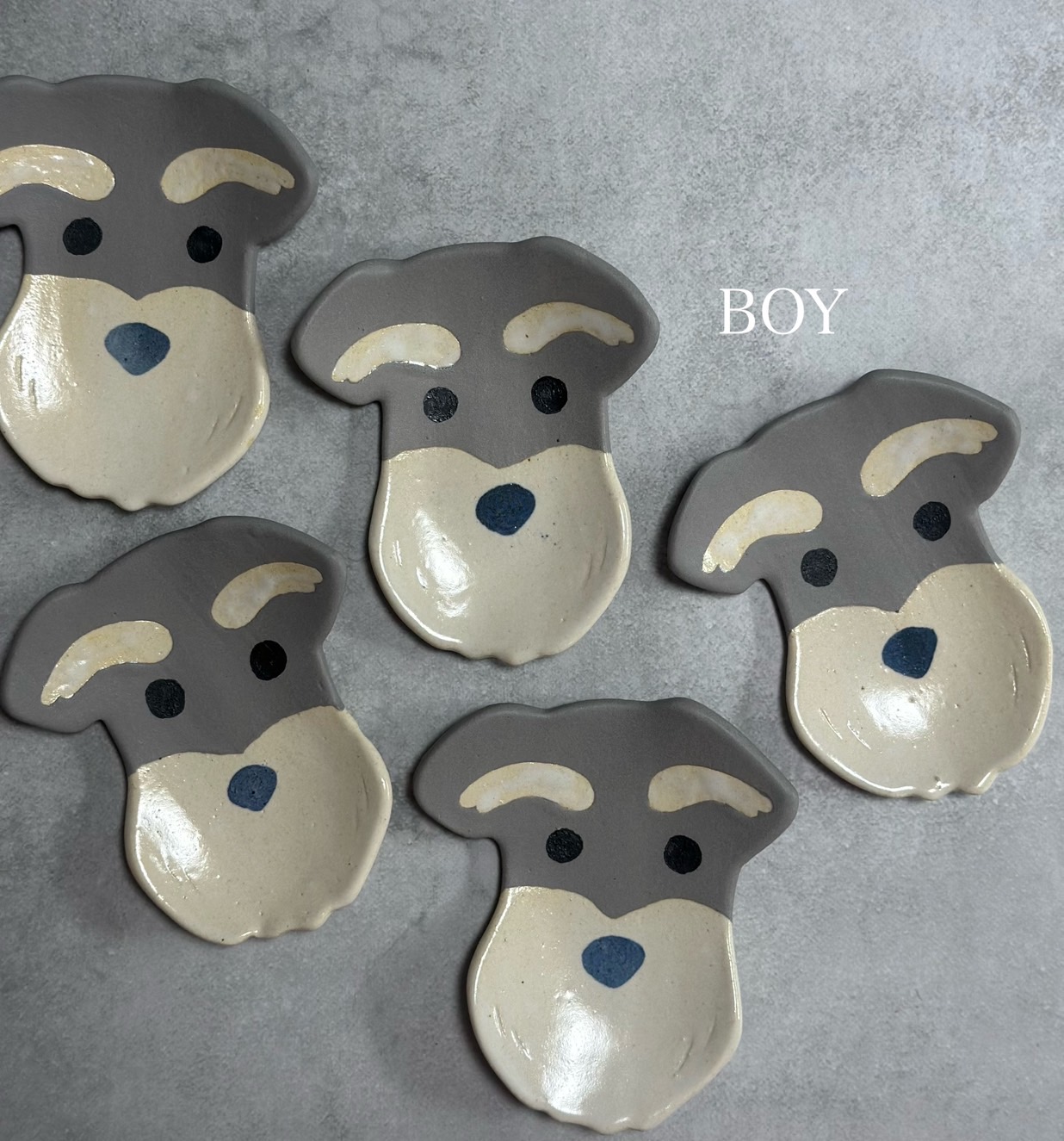 ※ミニチュアシュナウザーの豆皿とミニチュアダックスフンドの長皿は、